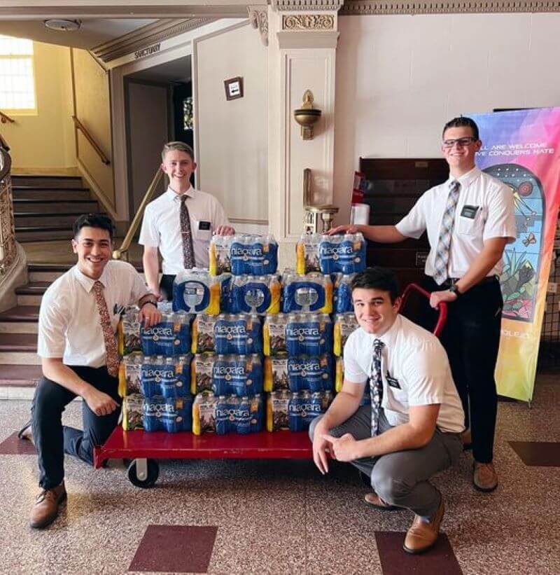Thank you, Church of Latter Day Saints (LDS) team, for helping us move 30 cases of water up three flights of stairs at Travis Park Church.