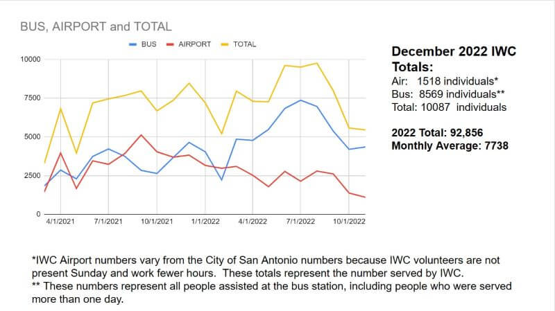 In December 2022 alone, IWC served 10,087 individuals; and almost 93,000 individuals in 2022. As asylum seekers continue their journey to family members and sponsors, IWC will serve them with practicality, kindness, and compassion. Learn more about the organization at our website.