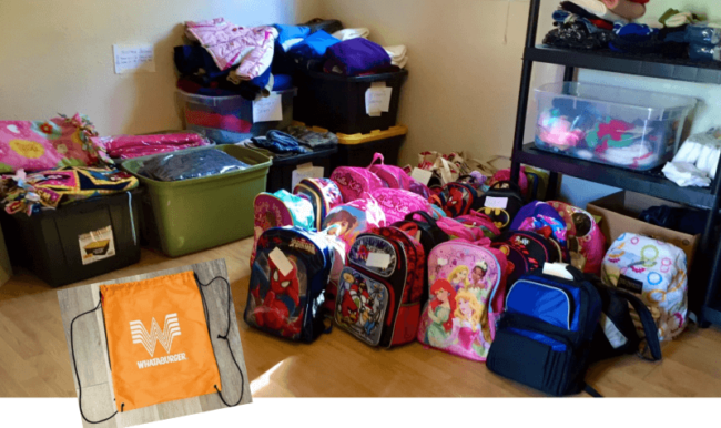 LDS Logistics Volunteers move backpacks to IWC storage at Travis Park Church. A big thanks to our Backpack and Logistics volunteers for keeping the Bus Station Program well-supplied with backpacks…